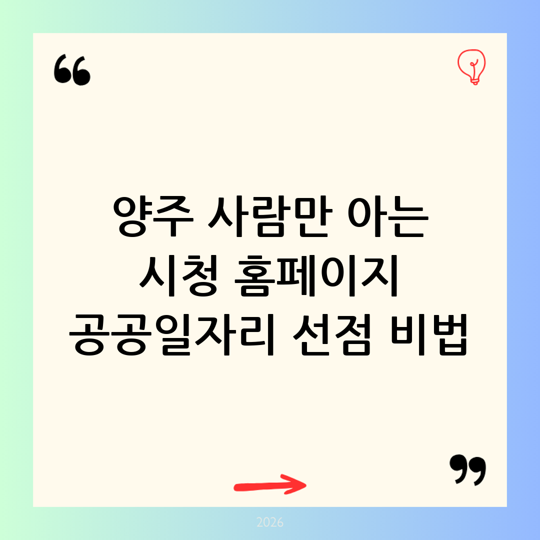 지금 바로 스마트폰이나 PC를 켜고 양주시청 홈페이지에 접속해 보세요. 나에게 딱 맞는 맞춤 구인 공고를 확인하고, 안정적이고 혜택이 풍부한 공공일자리를 남들보다 한발 앞서 선점하는 절호의 기회를 꽉 잡으시길 바랍니다. 여러분의 가슴 뛰는 새로운 출발과 눈부신 내일을 진심으로 응원합니다!