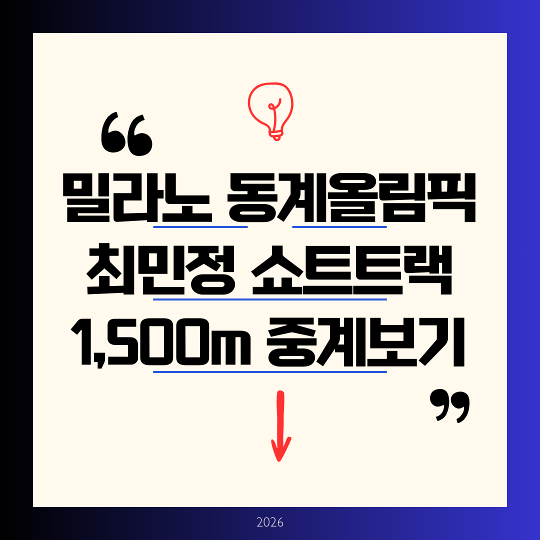 2026 밀라노 동계올림픽 최민정 쇼트트랙 1500m 중계 무료 시청 방법 및 경기 일정